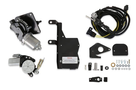The wiper door motor mounts inside the cowl area, and bolts directly to the wiper door linkage. This allows you to remove all wiper door vacuum hoses along with the wiper door actuator and bracket giving you a much cleaner firewall. The wiper harness has an OEM connector to plug directly into the existing wiper door limit switch. The wiper module will not allow the wiper blades to come on unless the wiper door is open.